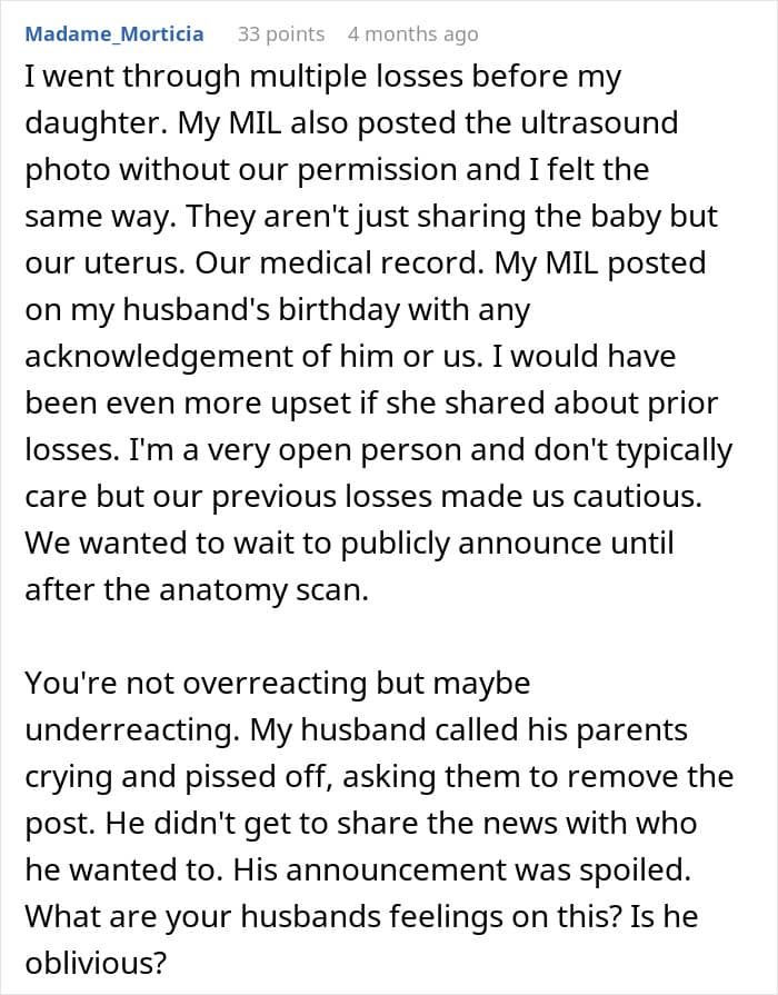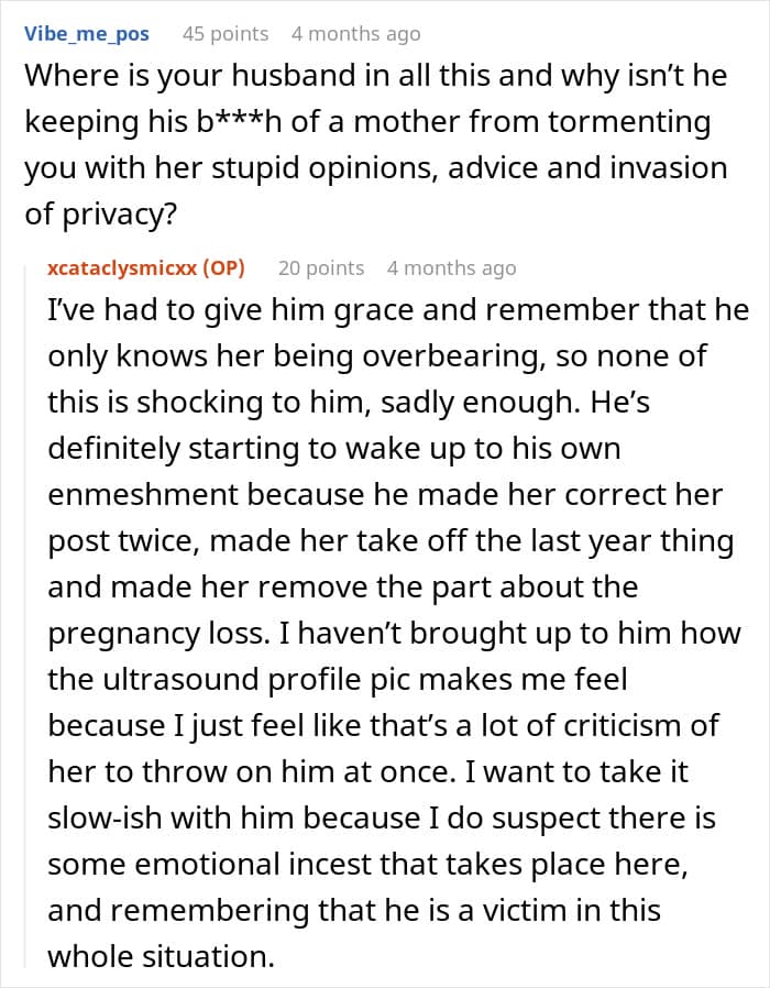 But unfortunately, some family members feel the need to make the experience even harder on new parents. One pregnant woman reached out to Reddit for advice after her mother-in-law pushed her to her breaking point. Below, you’ll find all of the details that she shared, as well as a conversation with the author and some of the replies concerned readers left her.