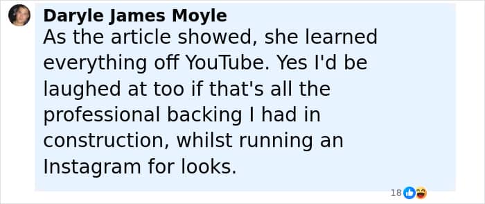 Determined to prove him wrong, the woman persisted in her ambitions. By 19, she had already started her own renovation business, teaching herself skills through YouTube tutorials.