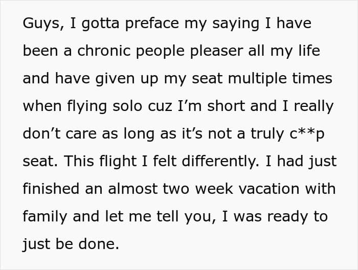 That’s exactly what one woman experienced when she decided she’d had enough of being a people pleaser. She politely declined to give up her aisle seat, and let’s just say… emotions ran high. Curious how it unfolded? Keep reading for the full story and the very relatable aftermath.