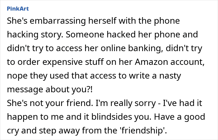 RELATED:An accidental text showed this woman her friend’s true colors, when a text that was meant for someone else ended up in her inbox