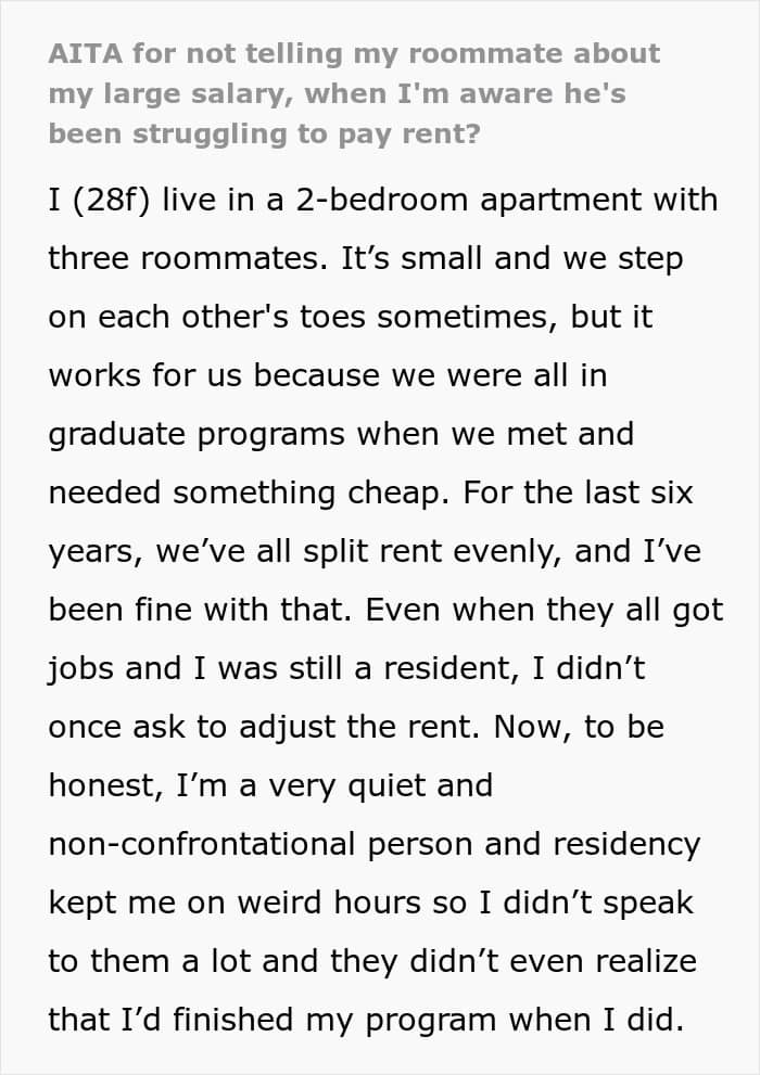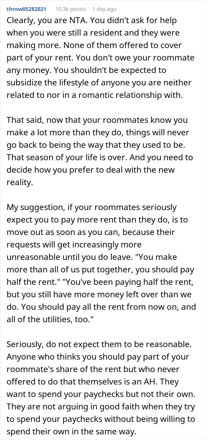 However, one woman had no plans to move away from her roommates after finishing her medical residency because she was perfectly happy with the arrangement. Until it all blew up when her roommates figured out how much she was earning. Below, you’ll find a story that she recently posted on the AITAH subreddit, as well as some of the replies invested readers shared.