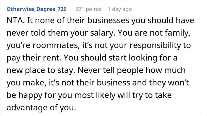 Woman Decides To Move Out After Roommates Find Out Her Salary: “Been Struggling To Pay Rent”