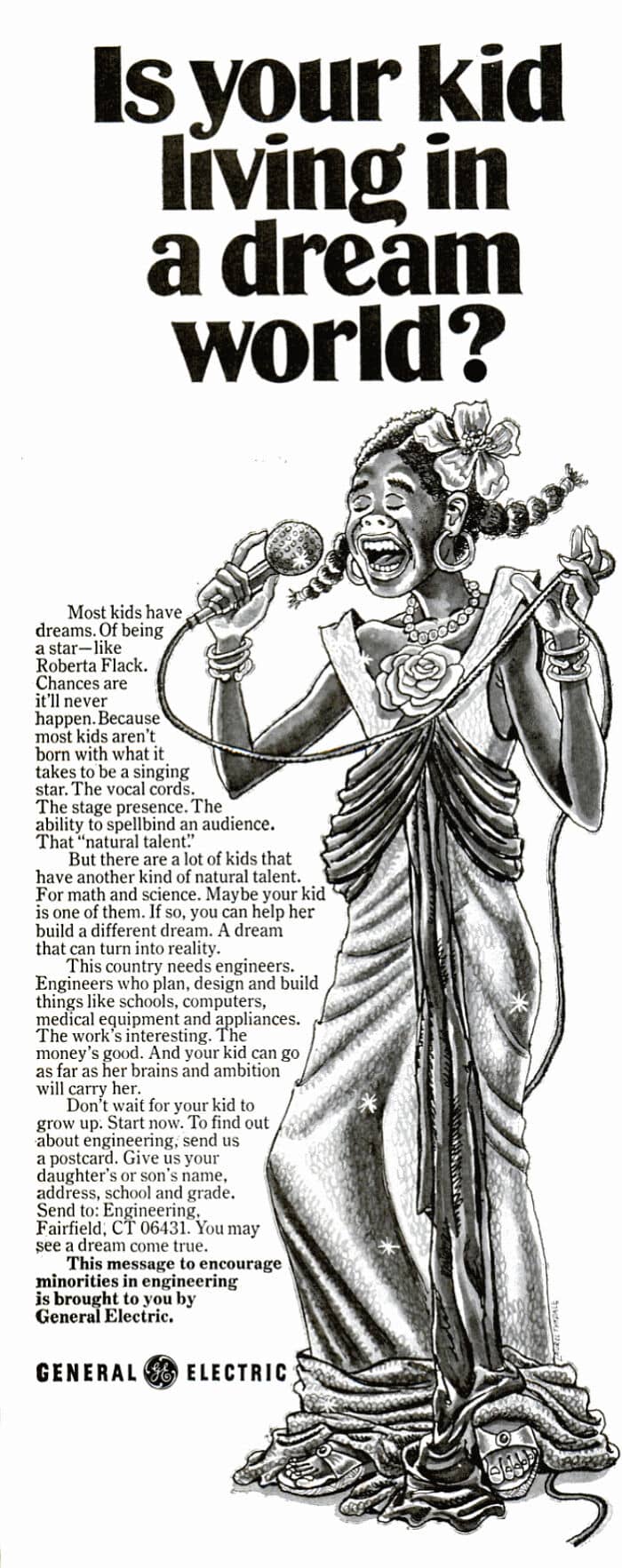 #20 “Is Your Kid Living In A Dream World?” Ad Placed In Ebony Magazine Encouraging Minorities To Pursue Stem Careers. General Electric, 1979