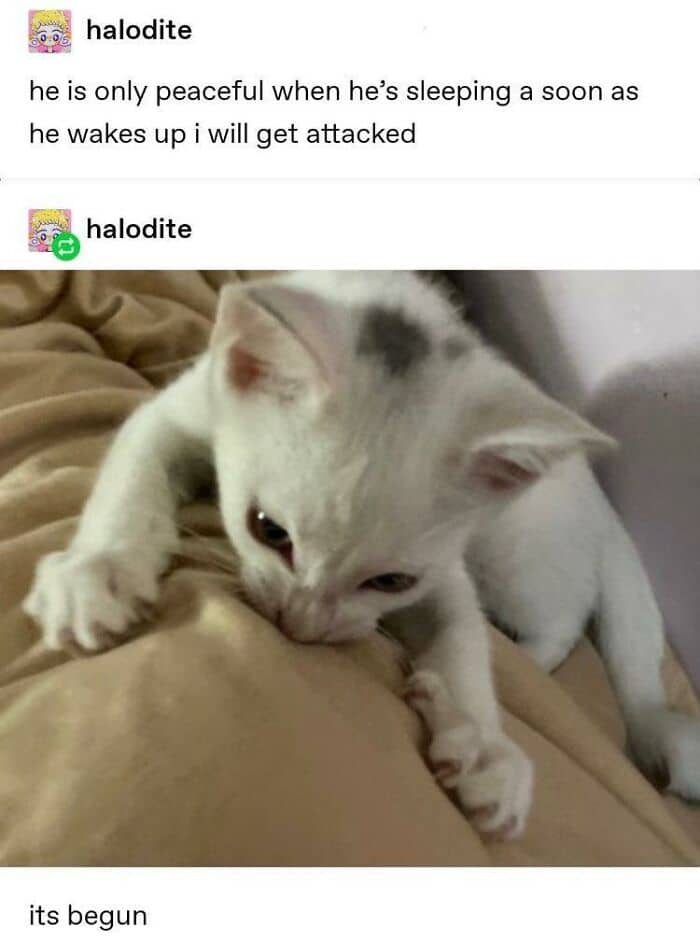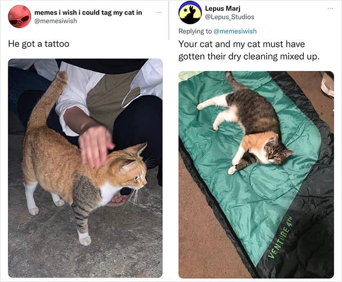 It’s not that surprising that these memes mainly feature dogs and cats as these animals are among the most popular pets worldwide. While we usually hear how different they are in their behavior, we got curious about the similarities they share. Sally Chamberlain told us that cats and dogs are similar in many ways: “Both have evolved to live in domestic homes as pets (except certain dog breeds and some individuals) and can form strong bonds with their human caregivers. They are both opportunistic in the ways that they try to gain the most benefit from living with us, such as making sure they get the warmest seat in the house, are given tasty food and treats and do their best to solicit love and attention from us by being cute and affectionate. Most dogs get taken out for walks but some cats can enjoy walks in the same way if they are trained to do so, usually from a young age. Cats also enjoy playing games and some of them like to play ‘fetch’ in the same way that dogs do.”