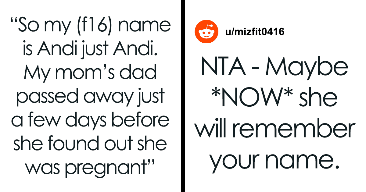 The original poster (OP) is a 16 Y.O. girl whose parents divorced when she was eight. The author’s first name is Andi. Yes, that’s right, not Andy, not even Andrea. The thing is that the OP’s grandfather passed away just a few days before her mom found out about her pregnancy, so she decided to perpetuate the memory of her dad in this beautiful way.
