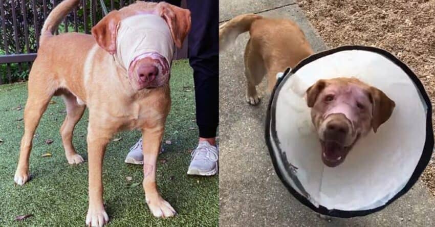 Thankfully, his bandages were finally removed and he now looks much happier. He is now in a foster home and we hope that he will be in a forever home, according to Tunica Humane Society.