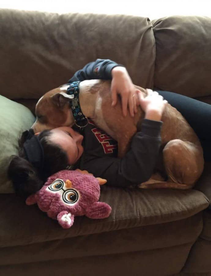 Shelter dogs don’t get much love from owners and it’s always sad when they have to be put down. Thankfully, the rising movement of adopting found dogs and cats is helping more and more of these shelter animals find loving families and new homes. Russ the Pitbull found home in the loving arms of Kayla Filoon, a 20-year-old student who volunteered as a dog-walker for an animal shelter in Philadelphia. Russ was taken into where Filoon works and it was love at first sight. According to Filoon, she knew there was a connection between them from the moment she laid eyes on Russ. He apparently felt the same way, as seen in this that Filon’s friend posted on Facebook of Russ being affectionate!
