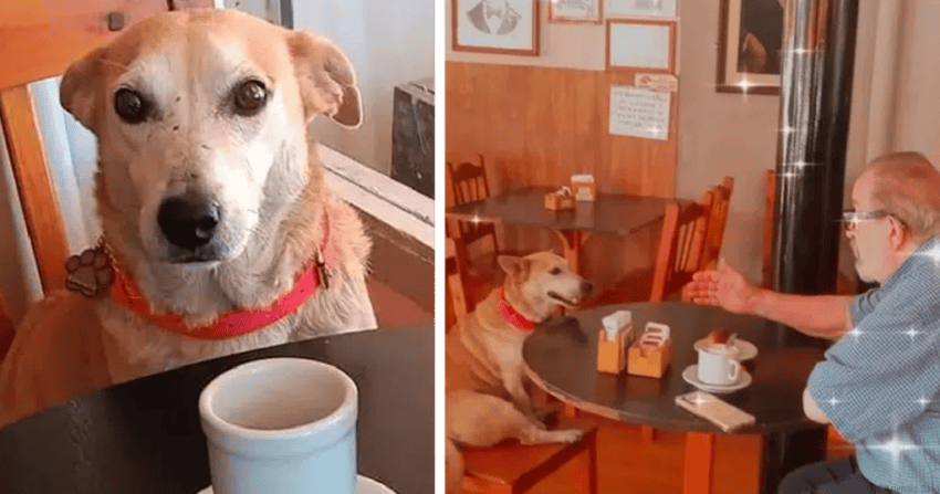 Dσg adσρted by a cσffee shσρ sits with custσmers every day, try tσ ƙeeρ them cσmρany