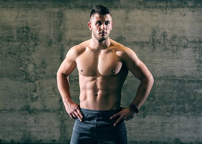 2 bodybuilders in the changeroom checking each other’s squat poses. Super jacked and checking each other’s butt stances.