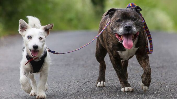 Abandoned Blind Dog Has His Own Guide Dog And Now They Are Happy Together