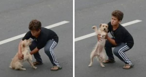 Little Boy Stops Traffic To Save Crying Dog From Busy Road After It Is Hit By Car