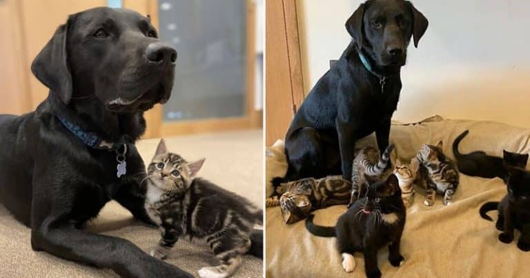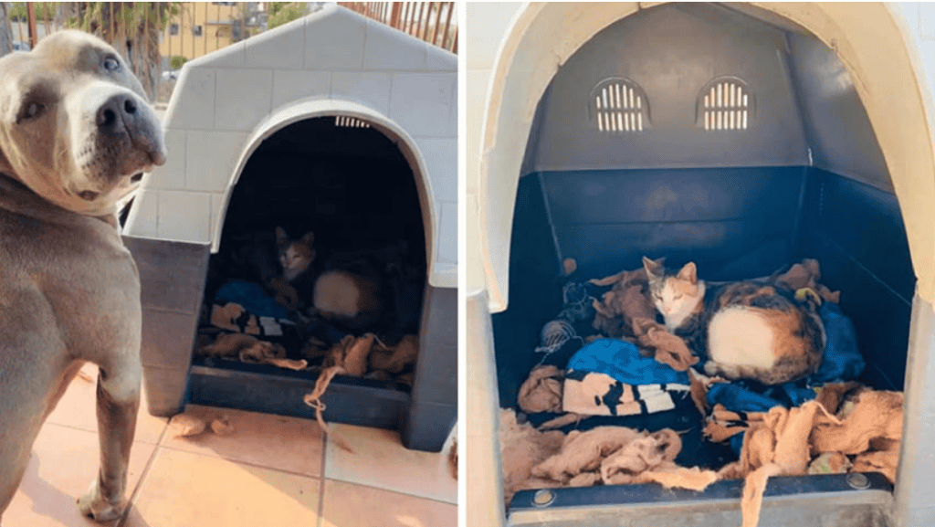 This Sweet Pit Bull Invited Pregnant Stray Cat Into His House To Give Birth