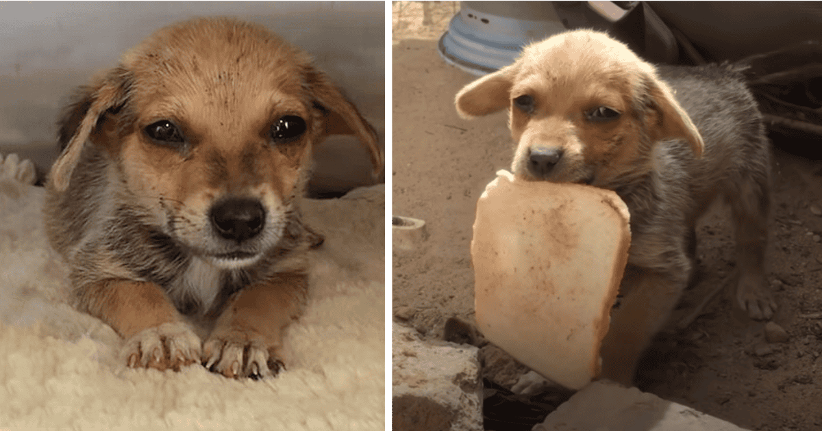 Poor Abandoned Puppy, Burst Into Tears When Given A Piece Of Bread